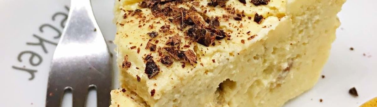 Leckerer Banana Cheesecake mit Magerquark und getrockneten Bananenscheiben. Einfaches Rezept für einen kleinen Kuchen.