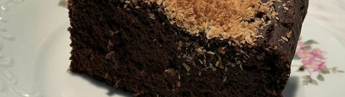 Un gâteau riche en saveur, bien chocolaté et à base de courge avec une note de noix de coco.