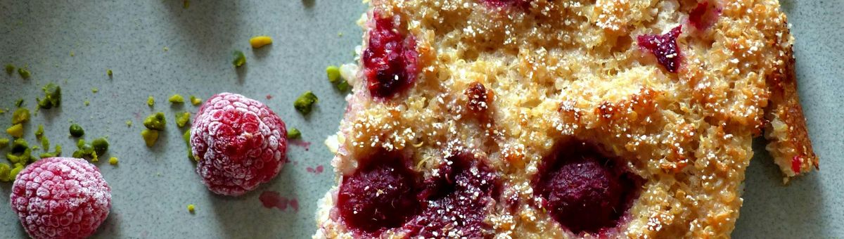 Havermelk quinoa ovenschotel met sojawrongel en frambozen - een eenvoudig en heerlijk recept voor een snel diner of dessert.