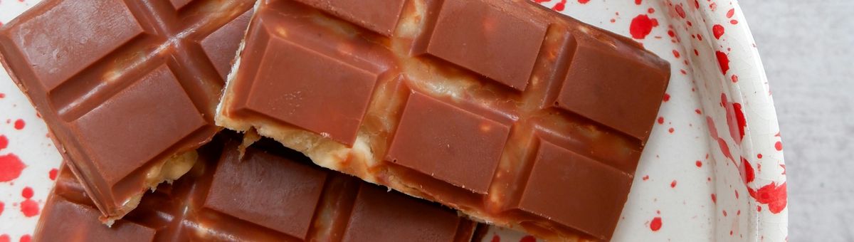 Infine, sciogliere nuovamente il restante cioccolato alternativo al latte, ricoprire la barretta e raffreddare nuovamente.