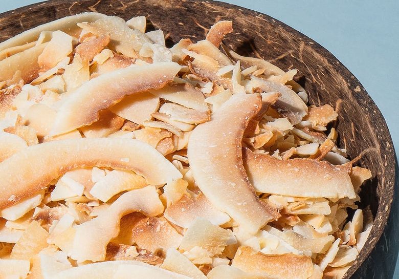 Coconut flour is made from the dried flesh of the coconut. To do this, it must be removed from the fruit, dried fresh from the harvest and de-oiled by pressing. The dry mass is then ground into a fine flour and can be used as a gluten-free flour alternative. You can top baked goods, as well as porridge and the like, with coconut flakes containing fiber.