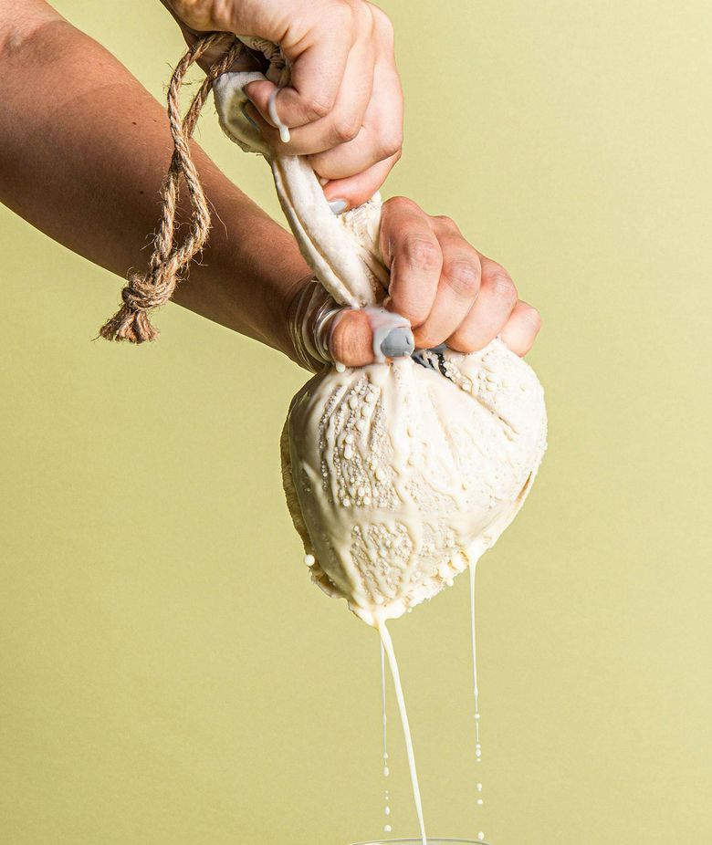 No matter which of the two methods you have used: Finally, pour the mixture through the fine sieve or press it out in a slightly damp tea towel or nut drink bag. This removes any coarse residue from the liquid mixture.