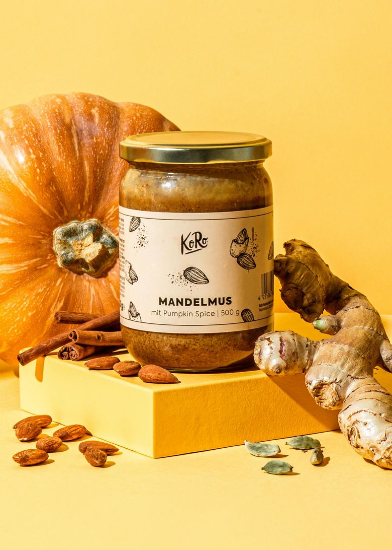 During one of our daily KoRo snack afternoons in the office, we sprinkled a little of the delicious pumpkin spice on our favorite nut butter for fun and then had to be careful that our colleagues didn't snatch the spoons out of each other's hands. Because the combination is unbeatably aromatic: the sweet and creamy brown almond paste meets spicy pumpkin spice, a true autumn symphony that Joseph Haydn could not have put to music any better. You might be thinking that we at KoRo are conceited. No, don't worry, we're just very confident in our own creations. That's why we regularly introduce you to our favorites here, which, as in the case of our Pumpkin Spice Almond Butter, sometimes disappear into the crowd alongside their well-known siblings, Cashew Nut Butter, Peanut Butter or our Date Hazelnut Cream. Chris and Liam Hemsworth are great actors, but so is their brother Luke! But many people haven't heard of him yet. And so it is with our almond butter with pumpkin spice. It's also super versatile and can be spooned on its own or stirred into porridge on a chilly fall morning. But one thing is clear: cozy evenings on cold days invite you to make the most famous autumn drink of all: Pumpkin Spice Latte (*singing angel choirs enter*). Of course, we don't want to deprive you of this recipe and have added a little twist to the classic. You've already guessed it: it's our delicious almond butter with pumpkin spice! And because we're not stingy with good things, we also have a second dish ready for you: a pumpkin cake with a plant-based pumpkin cream frosting! So what are you waiting for? Grab our almond butter with pumpkin spice and try it out!