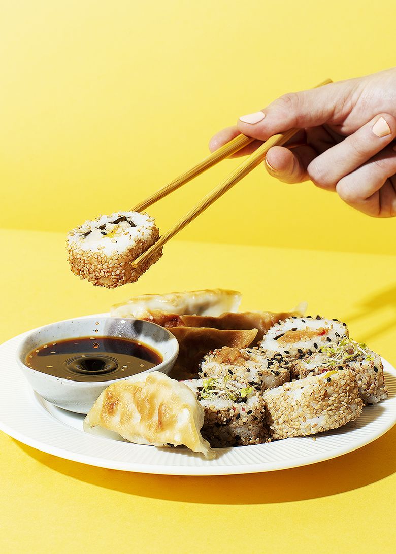 Instead of savory sushi, you can also try a sweet version. Replace the rice vinegar mixture with coconut milk and coconut blossom sugar and simply leave out the nori sheet when rolling. Instead, we recommend placing cling film on the bamboo mat to make it easier for you to roll without the nori sheet. You can top the sweet rice with the fruit of your choice. (Roasted) coconut chips or nuts go particularly well with this. For a chocolate craving, you could mix cocoa powder or cocoa nibs into the rice.Instead of soy sauce, you could put a small bowl of maple syrup on the table and nut butter of your choice instead of wasabi. Definitely something new!
