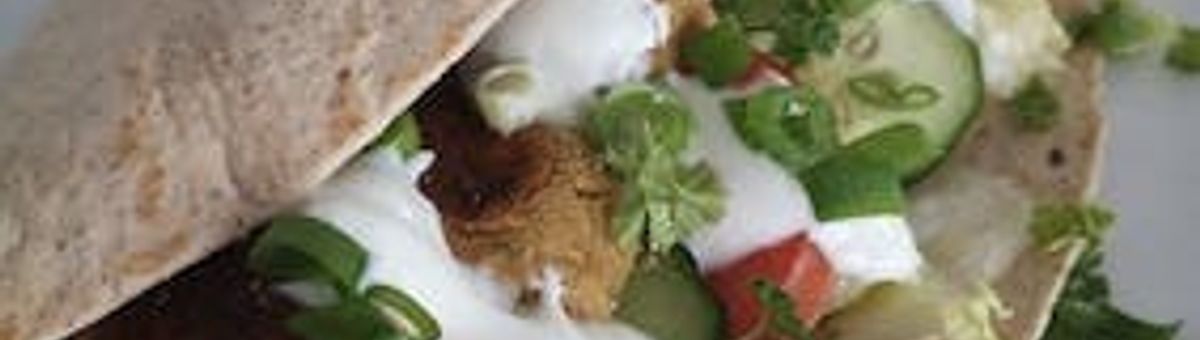 Delicious chickpea balls served in a wrap with vegetables and yogurt.