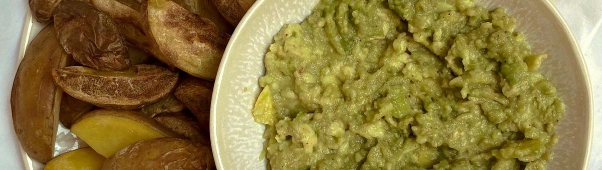 Start a sofa evening with this recipe for oven potato wedges with guacamole.