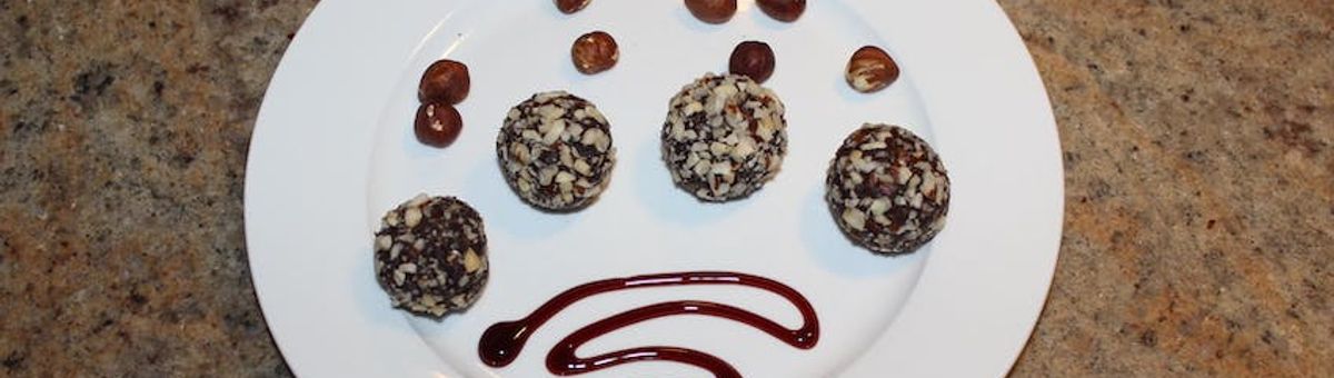 Then the date-cocoa mixture is formed into small balls with your hands. One hazelnut per ball is included in the dough.
