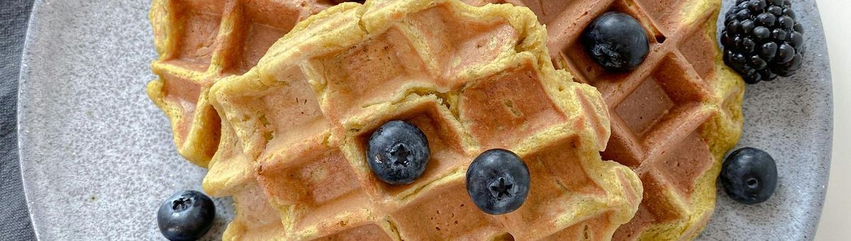 Vegan waffles with almond flour, vanilla protein powder and apple cider vinegar.