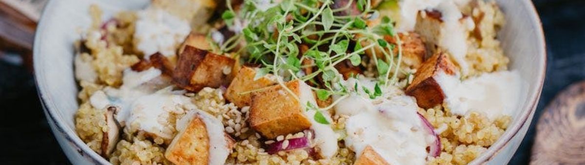 Convince yourself of the taste experience of däftigem smoked tofu, fresh vegetables and fine nutty tasting quinoa.