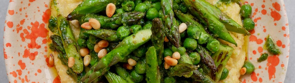 Asparagus on polenta with wild garlic pesto