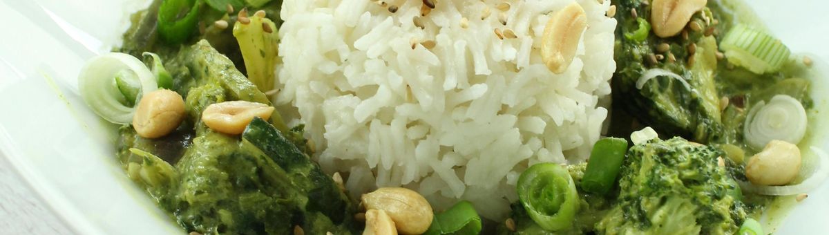 A change from red or yellow curry: a simple and delicious vegetable curry with zucchini, broccoli and spinach that is quick to prepare.