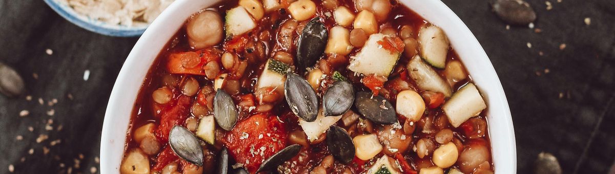 Simmer for just under 15 minutes and top with pumpkin seeds and yeast flakes.