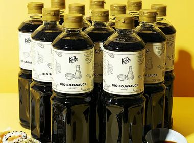 Fermentation of soybeans creates the characteristic umami flavour. The process is called brewing. Yes, just like beer. It only takes 4 ingredients to brew a good soy sauce: Soy, water, wheat and salt. All right, and a lot of patience. The fermentation of the sauce alone takes several months. How good that the soy sauce comes ready-made and in 1 litre format to your home! By the way, the ingredients of our soy sauce are organically grown, so the sauce is 100 % organic! As an alternative to our conventional soy sauce, we also have reduced-salt soy sauce in our range. This could be interesting for you if you want to reduce your salt intake.