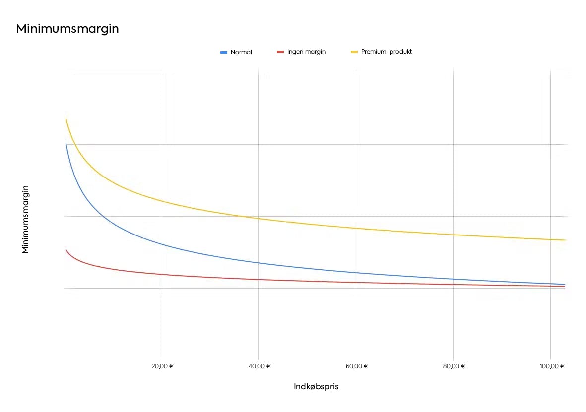 Hvorfor ikke bare hæve alle priser med x % over hele linjen? Så enkelt er det desværre ikke, for så ville mange af vores produkter ikke længere være konkurrencedygtige. Derfor foretrækker vi at øge minimumsmargenen. Det har den fordel, at produkter, som allerede har en meget lav gennemsnitspris, får en større prisstigning. I de fleste tilfælde har de stadig et meget godt forhold mellem pris og ydelse og er derfor stadig konkurrencedygtige. Men hvis prisforskellen mellem et produkt og dets konkurrenter allerede er lille, øger vi kun prisen en smule mere.