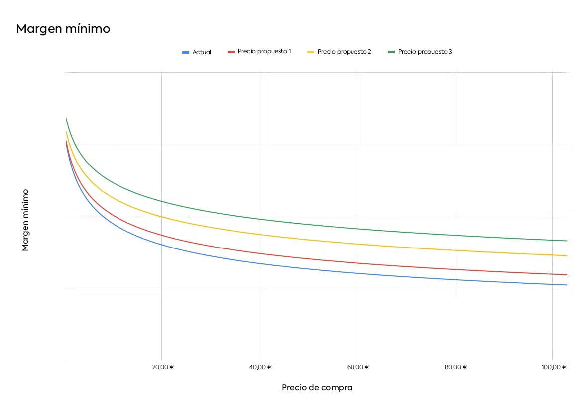 Para decidir qué aumento de precio elegir, solemos considerar tres escenarios y utilizar unos cuantos productos para comparar qué escenario sigue ofreciendo la mejor relación calidad-precio para los clientes por término medio.