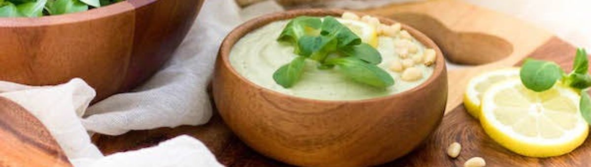 Lägg cashewnötter, solrosfrön, avokado, kristallsalt, cayennepeppar, grönsakskrydda, vitlöksklyfta, citroner, kokosblomsocker och vatten i en mixer.
