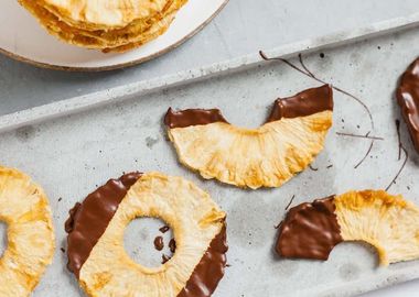Dried pineapple rings are a great snack during work, before or after a workout and in school or college –any moment is good for pineapple! But you can also enjoy our pineapple rings combined with other treats: they go very well in your muesli or porridge. Chopped up, they are a great base for exotic pralines or fruit bars. In addition to the pineapple rings, you just need coconut chips, coconut oil, maple syrup, cashews and cocoa to make our pineapple spinach bar. Simply chop and mix everything, shape it into bars and let it cool. Also: our pineapple rings are great in savoury dishes such as curries. We recommend letting the pineapple soak overnight so it gets nice and soft and tastes even better in your curry.