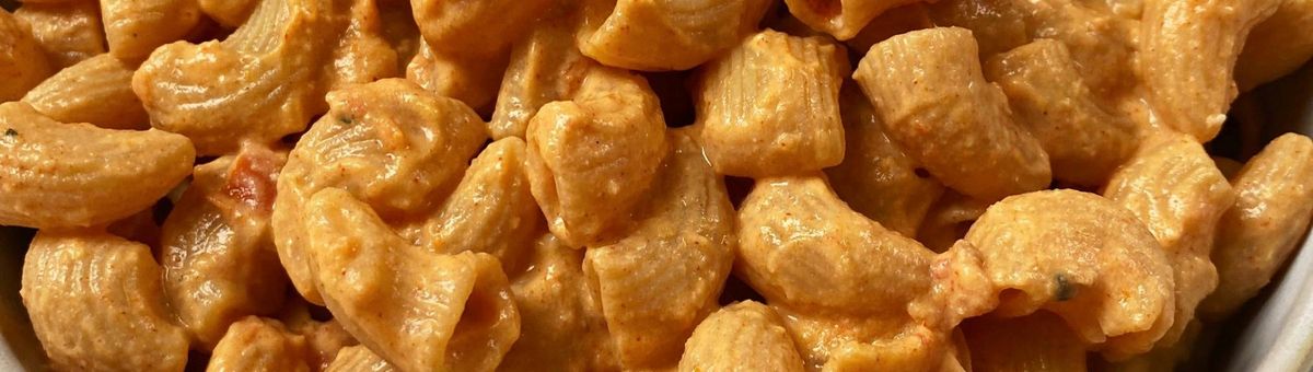 Add hummus and soy yogurt to the pot with the noodles and stir in.