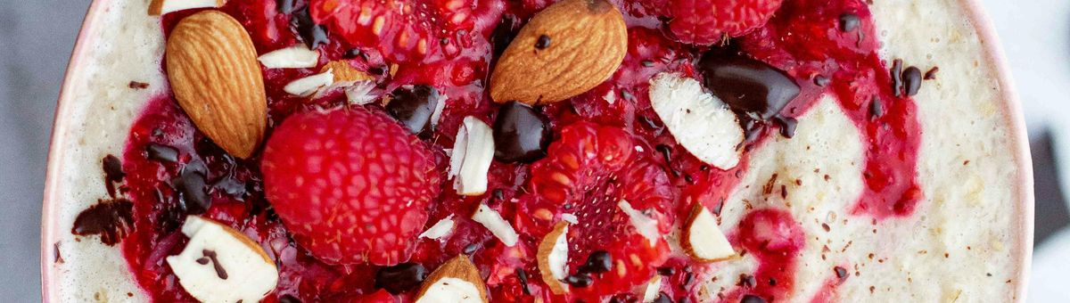 Cook rolled oats, psyllium husks, vanilla powder, protein powder and the oat drink in a saucepan until the desired consistency and then pour into a bowl.