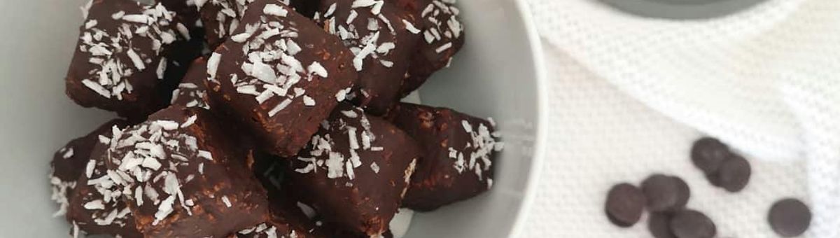 Kokosmus im Topf schmelzen, Kokosflocken und Erythrit hinzufügen und umrühren. Die Masse in Eiswürfelförmchen drücken und für 30 Minuten in den Kühlschrank stellen.